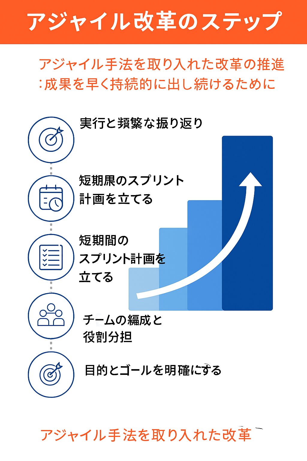 実際にアジャイルを改革に取り入れるには、どのように進めていけば良いのでしょうか。以下に、その具体的なステップを詳述します。