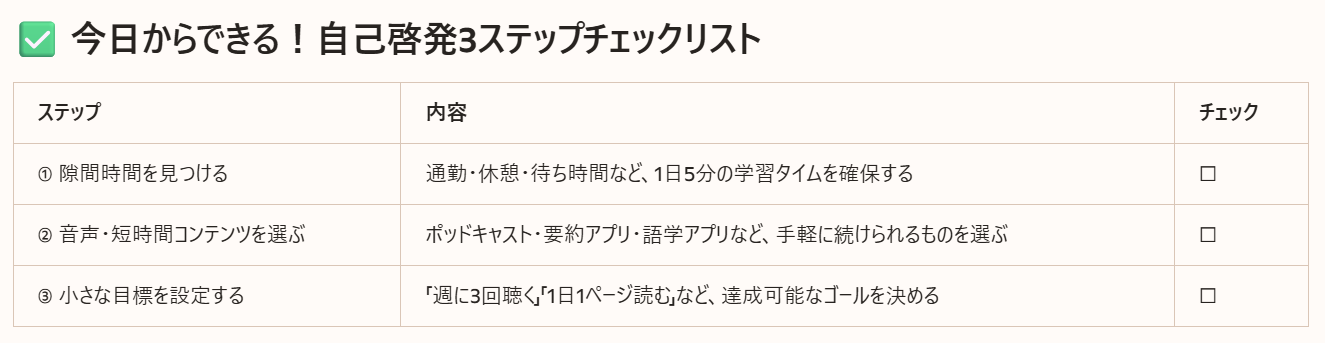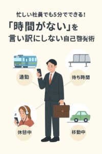 多忙な毎日の中で自己啓発を続けるのは決して簡単ではありません。でも、ちょっとした工夫と意識の切り替えを行えば、時間がなくて学習できないという言い訳は通じなくなります。