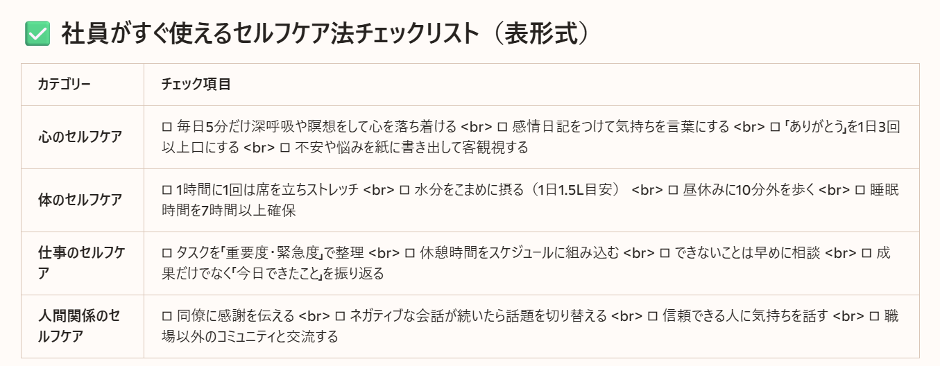 ストレスマネジメントは一過性の施策ではなく、継続的に取り組むべき重要なテーマです。企業全体の意識改革や制度整備とともに、社員一人ひとりが自分の心と体のサインに気づき、適切なケアを行うことも不可欠です。